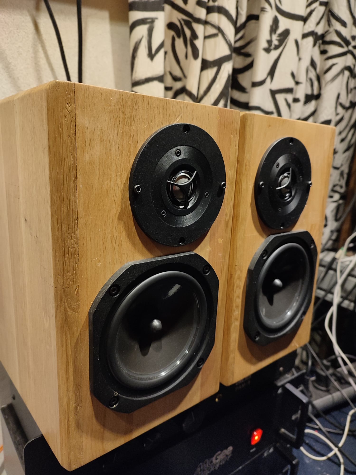 The loudspeakers feature a two-way configuration, with a Vifa 25AG tweeter and a Audax Aerogel mid-bass woofer. The tweeter is known for its clear and detailed highs, while the woofer delivers deep and powerful bass. The crossover has been custom designed to ensure that the two drivers work together seamlessly, providing a smooth and cohesive soundstage.